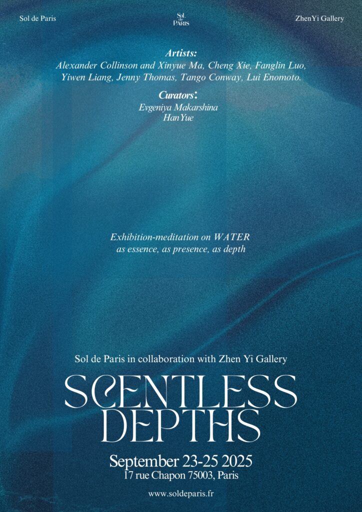 These ancient Chinese proverbs inspired Scentless Depths, a group exhibition exploring water as rhythm, resonance, and invisible presence. They speak of quiet power and essence without ornament—presence that shapes life profoundly without announcing itself. Water is visible and invisible, external and internal, physical and emotional. It is both life-giving and transformative, shaping landscapes, bodies, and the psyche.